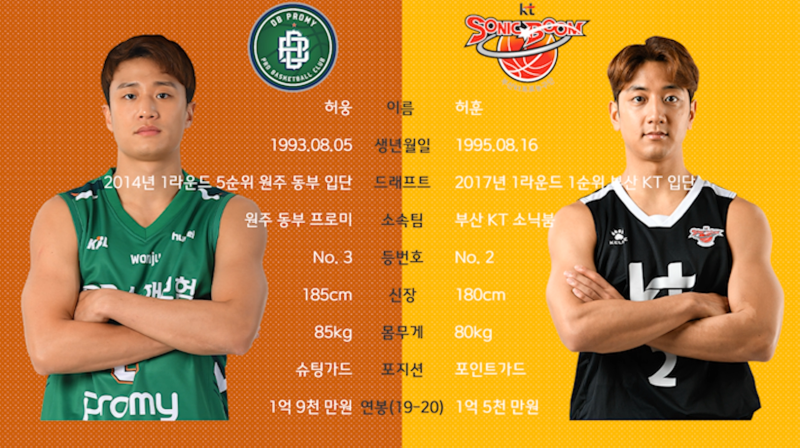 전 대한민국 농구 국가대표팀 감독인 허재가 그의 아버지이며 형 허웅은 원주 db 프로미에서 활약 중이다 허훈. 2017년 드래프트 (1라운드 1순위, 부산 kt) 소속